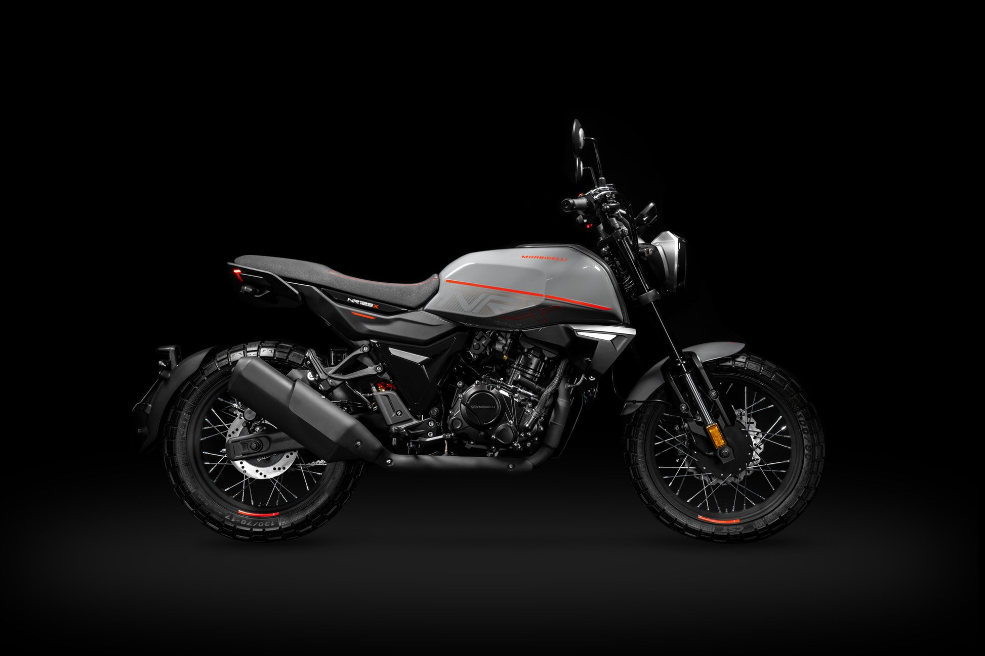 A Morbidelli NR125X combina design clássico com um toque moderno. Construída para a cidade, transforma as deslocações do dia a dia numa afirmação pessoal, com estilo scrambler, iluminação Full LED e uma postura arrojada que se destaca. O seu motor DOHC de 125cc, com refrigeração líquida, debita 14,5cv, aliado a uma caixa de 6 velocidades e embraiagem deslizante. Uma forquilha invertida de 33mm, suspensão traseira ajustável e travões de disco flutuantes garantem controlo seguro. Com indicador de mudança engrenada, ABS dianteiro e iluminação LED exclusiva, a NR125X é muito mais do que uma 125 — é uma moto de entrada afiada e com estilo, pensada para os dias de hoje.
