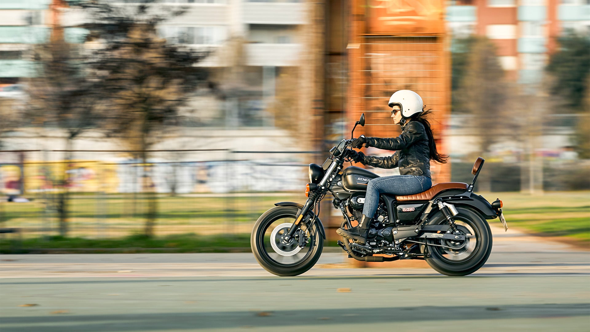 A Renegade Sport é uma Cruiser que combina detalhes desportivos com um design altamente apelativo, oferecendo sensações de condução inigualáveis. Com uma condução equilibrada e extremamente confortável, esta moto é ideal para quem procura performance sem abrir mão do conforto. Equipado com um motor monocilíndrico de 4 tempos e refrigeração a ar, o modelo possui uma cilindrada de 125 cc e entrega uma potência máxima de 9,5 cv a 8500 rpm (7,0 kW a 8500 rpm). O arranque elétrico facilita o início da viagem, enquanto a transmissão de 5 velocidades com corrente proporciona uma experiência de condução suave e eficiente, seja nas ruas da cidade ou nas estradas.